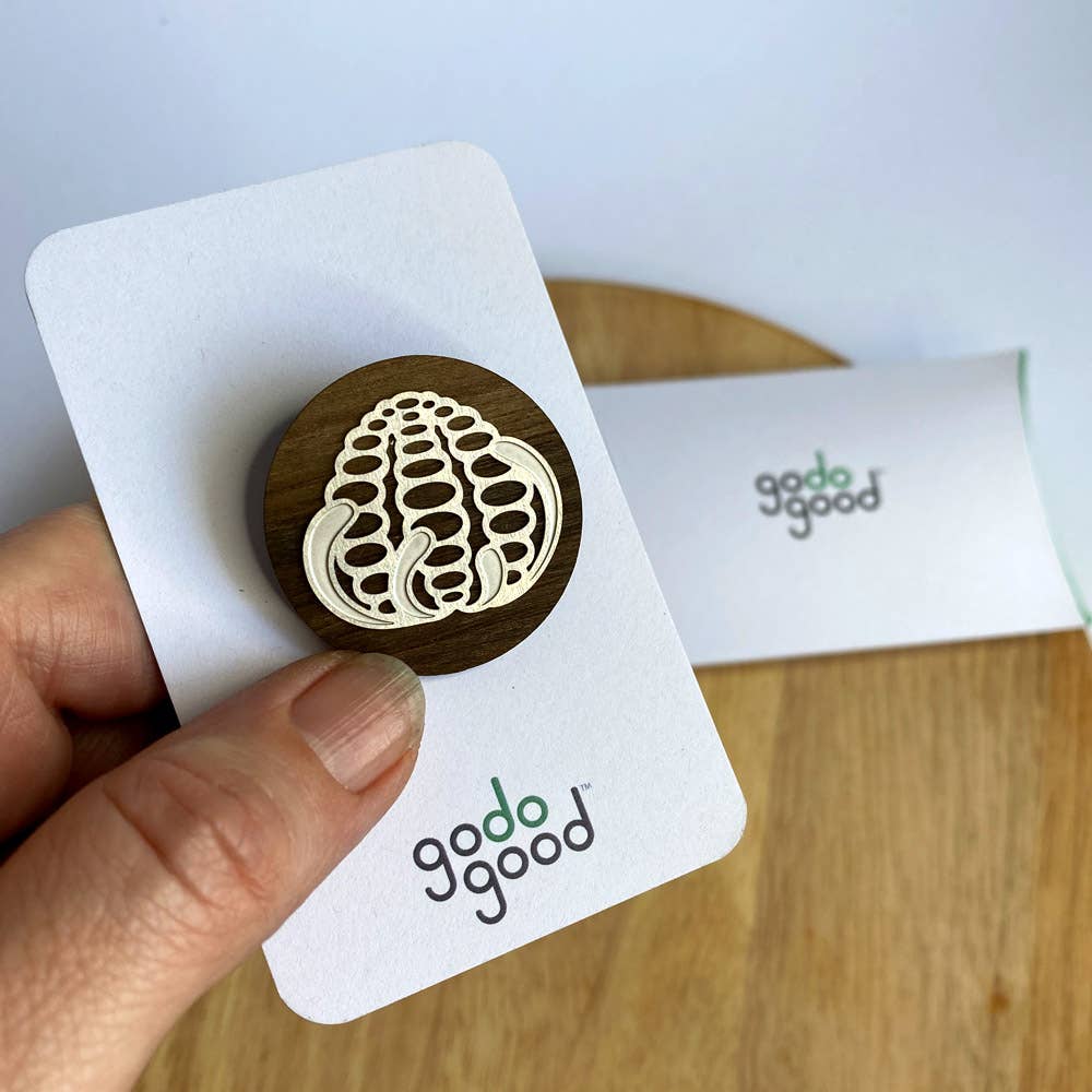 The Banksia brooch design is inspired by the natural repeating patterns found on Australian banksia seed pods. What you’ll love: - Unique two silver toned design sure to turn heads - Elegant timber back made from sustainable Queensland walnut - Hypoallergenic stainless steel brooch pin – perfect for sensitive skin - Ultra-lightweight and super comfortable to wear all day, every day.