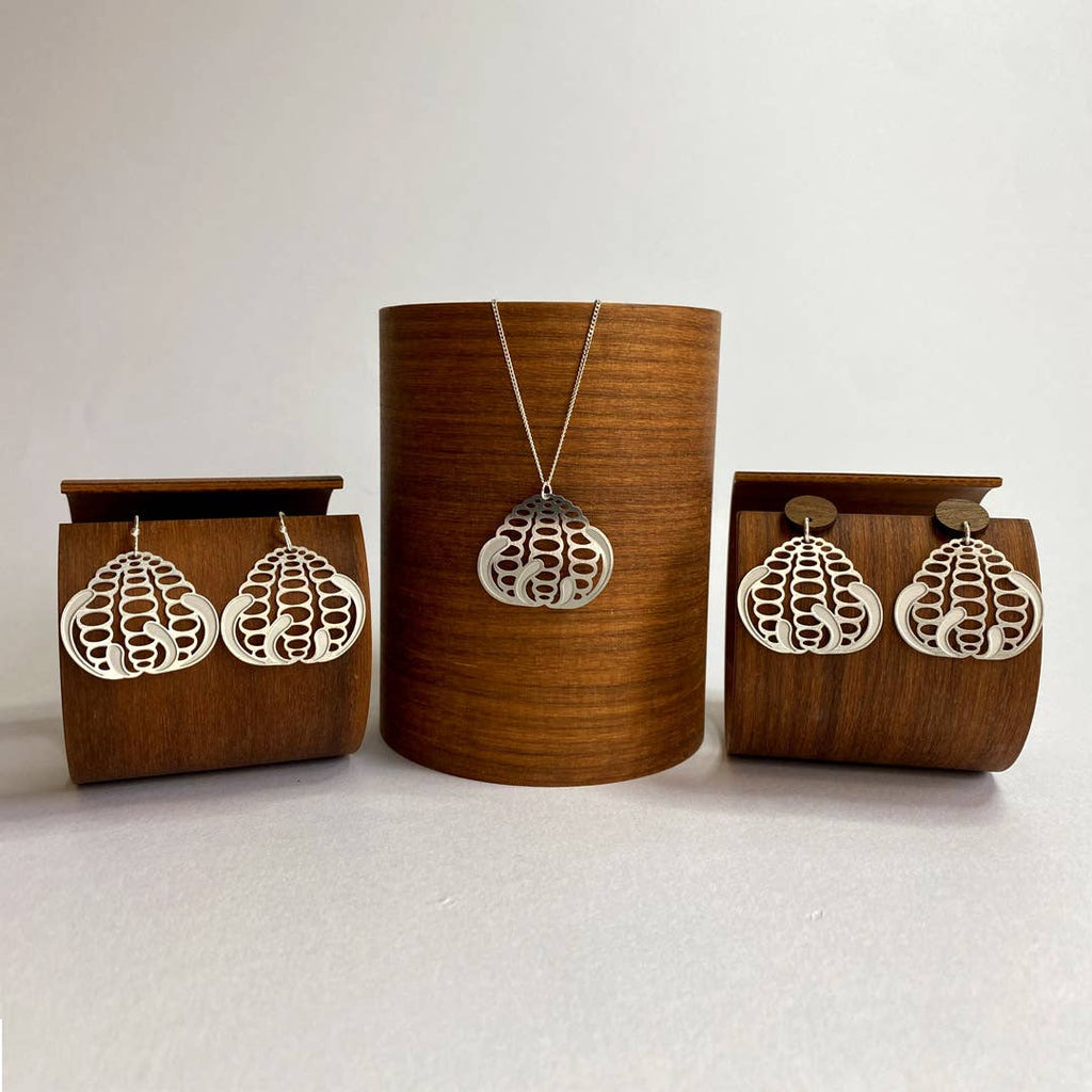 Banksia earrings are inspired by the natural repeating patterns found on Australian banksia seed pods. Banksia silver dangle earrings are lightweight and delicate in appearance yet strong and durable, making them comfortable to wear all day, every day – as well as on special occasions! Pair our Banksia earrings with your favourite outfit and stand out from the crowd.